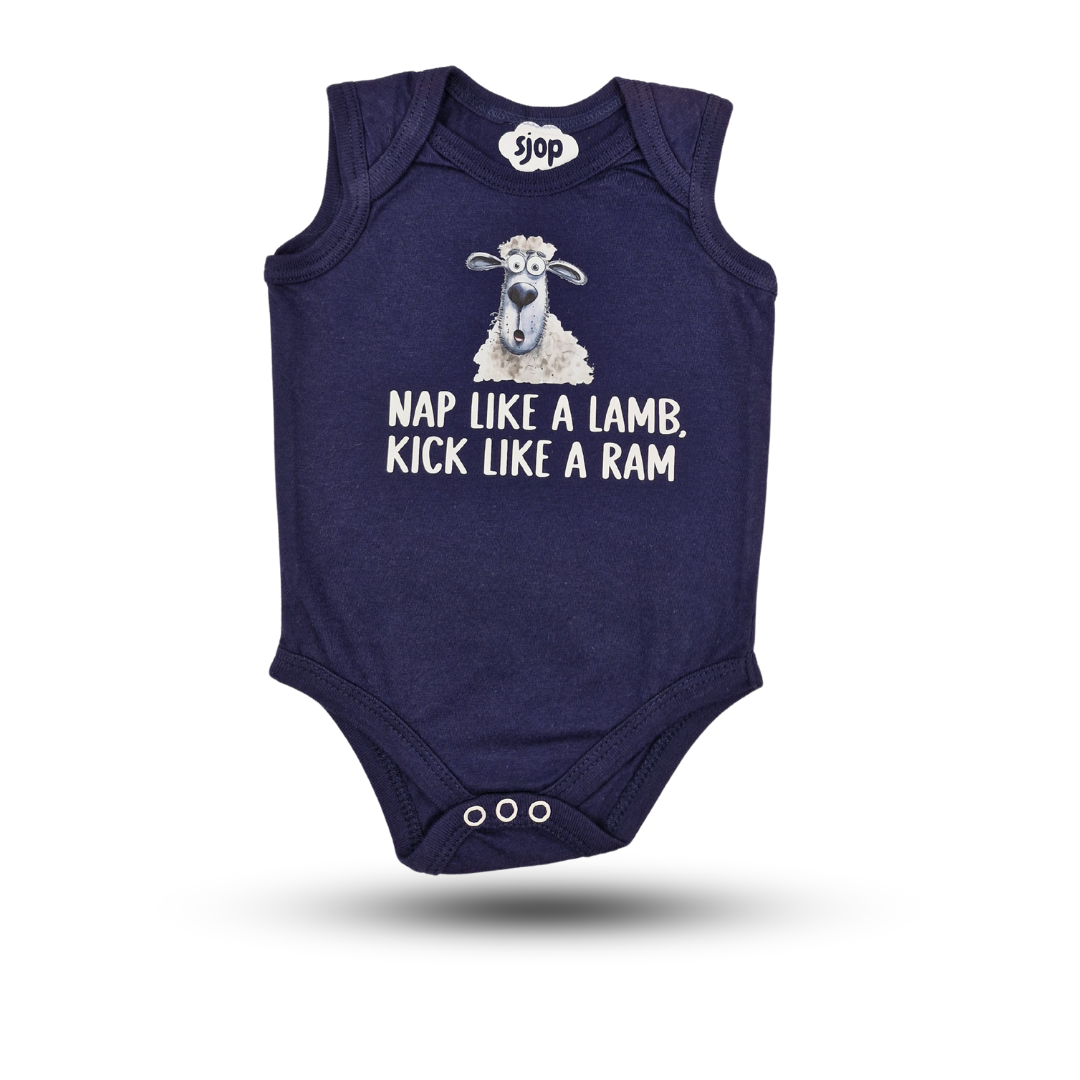 This babygrow features the cutest sheep cartoon face up front β soft, sleepy, innocent. But donβt be fooledβ¦ because this little one? They Nap like a lamb, kick like a ram. From peaceful naps to surprise tantrums that could rattle the crib rails, this outfit sums up baby life in one perfect line.