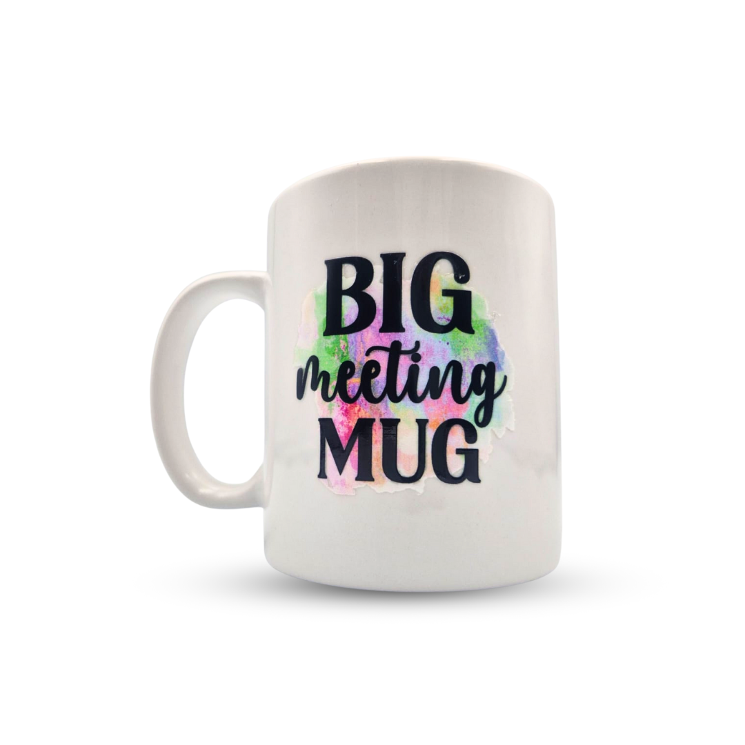 ✔ Bold "Big Meeting Mug" design for a fun, professional touch