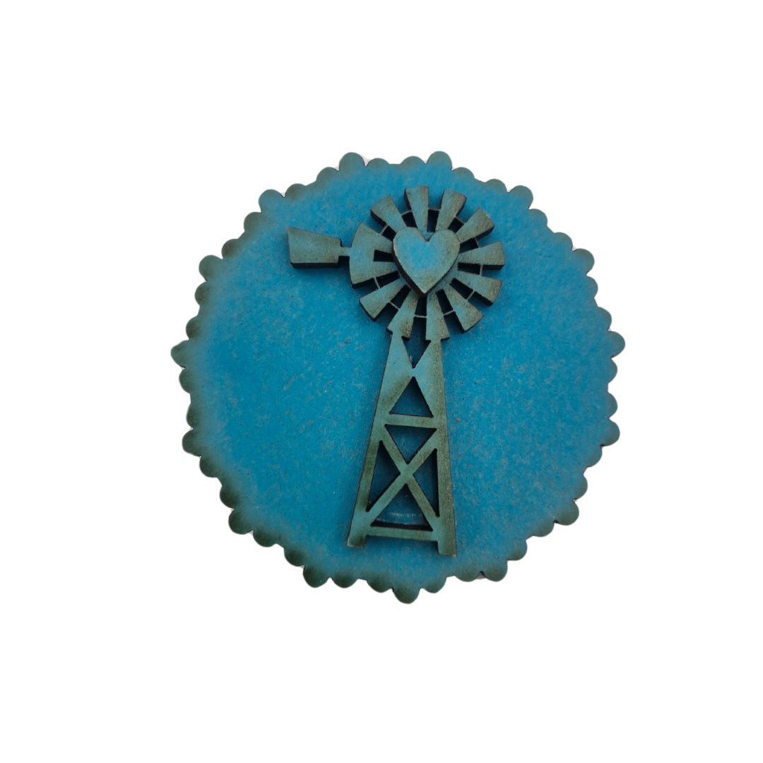 Embrace the charm of South African tradition with our Blue Round Wooden Brooch, featuring a striking windpomp (windmill) design. With its vibrant blue hue and rustic elegance, this brooch is the perfect accessory for any Boere wedding, adding a touch of heritage and style to your wedding attire or celebration look.